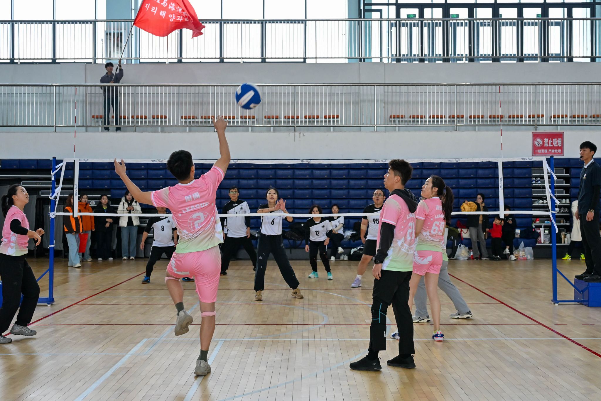 上午9时,比赛正式拉开帷幕。赛场上,运动员们精神饱满、配合默契,发球、垫球、扣杀、拦网等精彩瞬间不断,赢得现场观众阵阵掌声。学生组比赛紧张激烈,展现出青春的朝气与拼搏精神;教职工组比赛精彩纷呈,各队始终保持3男2女的混合阵容,赛出了风格与水平。整个赛程组织有序,裁判员公正执裁,工作人员恪尽职守,确保比赛顺利进行。