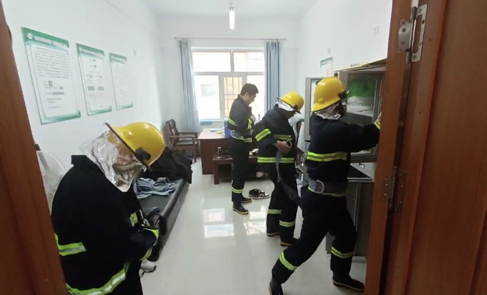 演练中,微型消防站队员和消防控制室值班人员密切配合,遵循“早预防、早发现、早处置”的原则,严格履行各自岗位职责。消控室值班人员接到并确认模拟火情信息后,立即启动灭火应急预案,队员接到模拟火情信息后第一时间赶到演练地点,以最快速度穿戴好个人防护装备,携带灭火器材、通讯设备等迅速赶往着火点确认火情,并根据灭火疏散逃生预案立即展开火灾扑救行动。