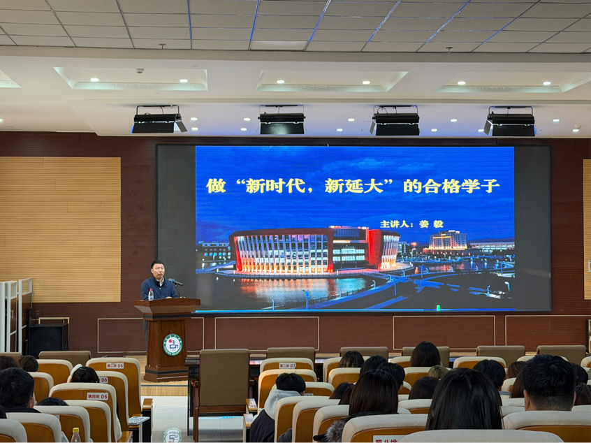 讲座以“做‘新时代,新延大’的合格学子”为主题,紧密围绕青年学子成长需求展开。姜毅结合自身工作经验与高校育人理念,从学习方法优化、大学生活规划、职业发展路径三个关键维度,为同学们提供了具体可行的指导建议。他着重强调,沟通能力与终身学习能力是新时代青年立足成长的“两大赋能钥匙”,鼓励同学们在大学时光中主动锤炼本领、提升综合素养,以昂扬姿态迎接成长挑战。