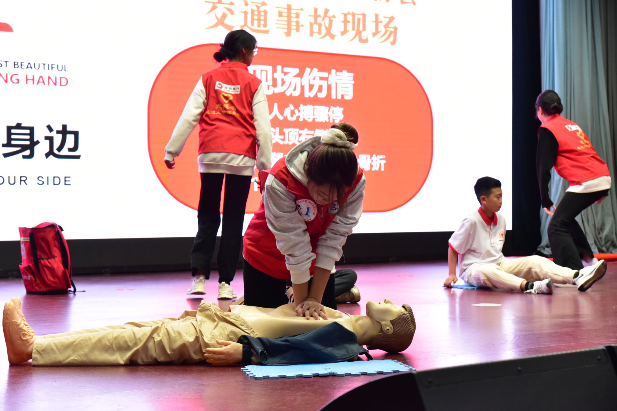 本次大赛以“关爱生命,‘救’在身边”为主题,旨在弘扬“人道、博爱、奉献”的红十字精神,提升公众在突发事件中的自救互救能力。来自全市各社区、企事业单位及社会组织的12支队伍同台竞技,围绕应急救护理论知识和实操技能展开全面比拼。