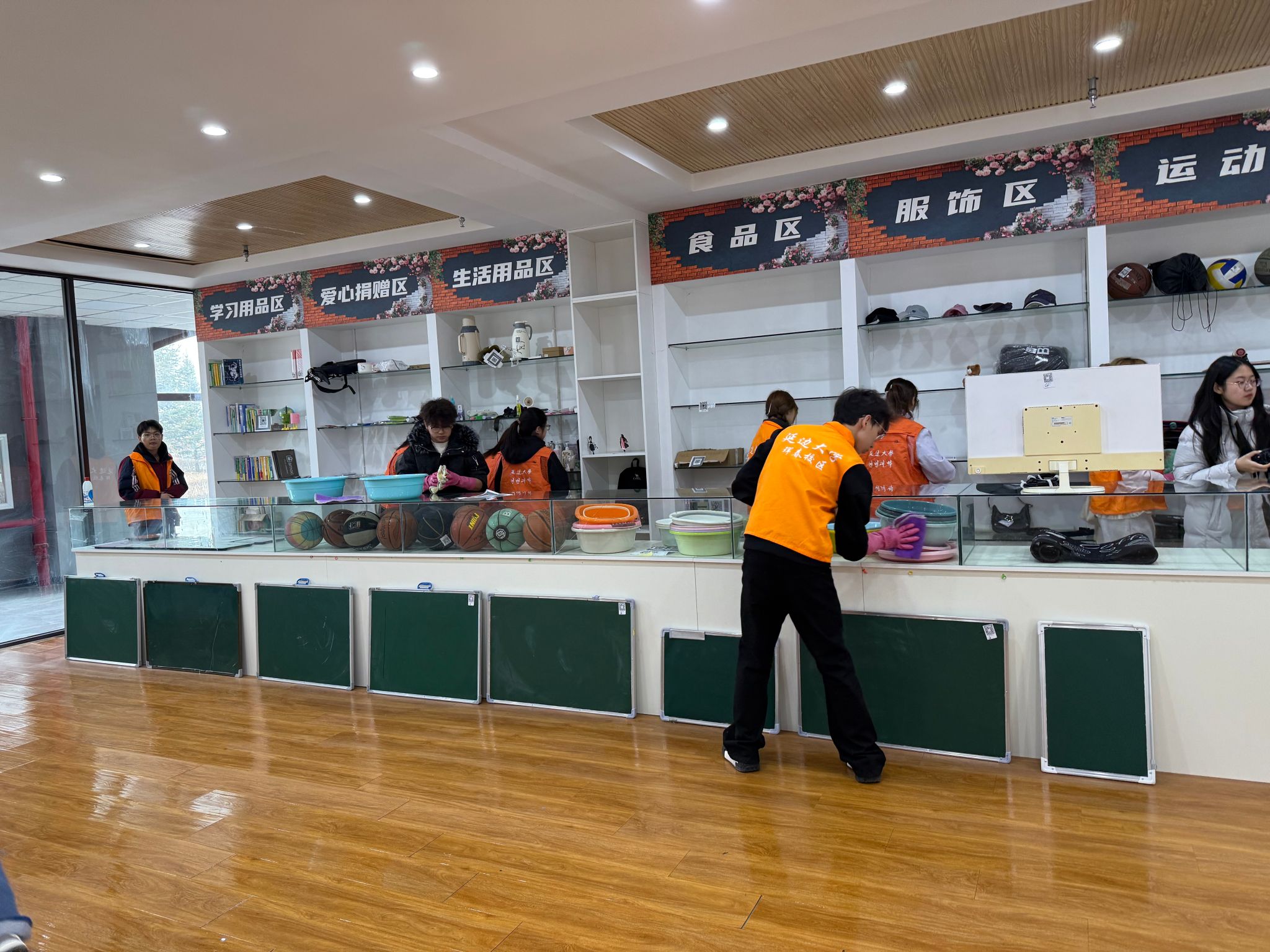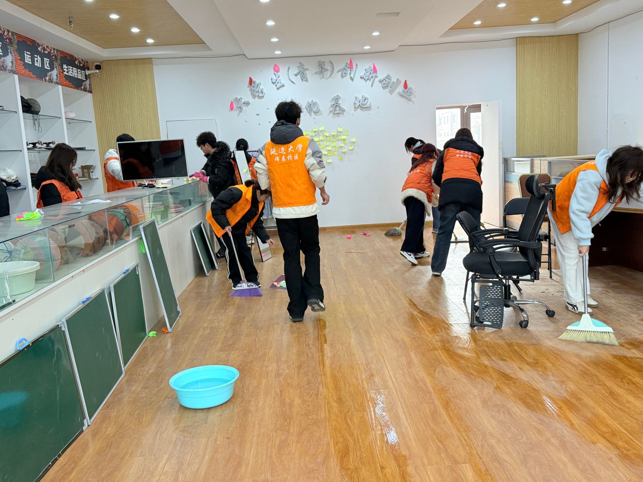 活动当天下午,40余名志愿者齐聚知新楼门前,以饱满的热情开启志愿之行。简短的动员仪式后,志愿者们被合理划分为“杂货铺整理组”和“植树区美化组”,在“焕然一新杂货铺”内,志愿者们分工明确、配合默契,充分展现出良好的协作意识和责任担当,细心将货架上凌乱的商品分类归置,用行动诠释认真踏实的做事态度。经过一个多小时的细致整理,原本杂乱的杂货铺变得井然有序。与此同时,植树区的志愿活动也在有序开展。志愿者们穿梭于绿植之间,手持垃圾钳和垃圾袋,仔细清理草丛中的塑料袋、烟头、枯枝败叶,为树木春季生长创造良好条件。阳光下,橘色的志愿马甲成为校园里一道亮丽的风景线。经过两小时的辛勤劳动,本次志愿活动取得丰硕成果:共清理各类垃圾10余袋,整理货架20余组,校区公共区域环境得到显著改善,绿色、整洁的校园氛围愈发浓厚。