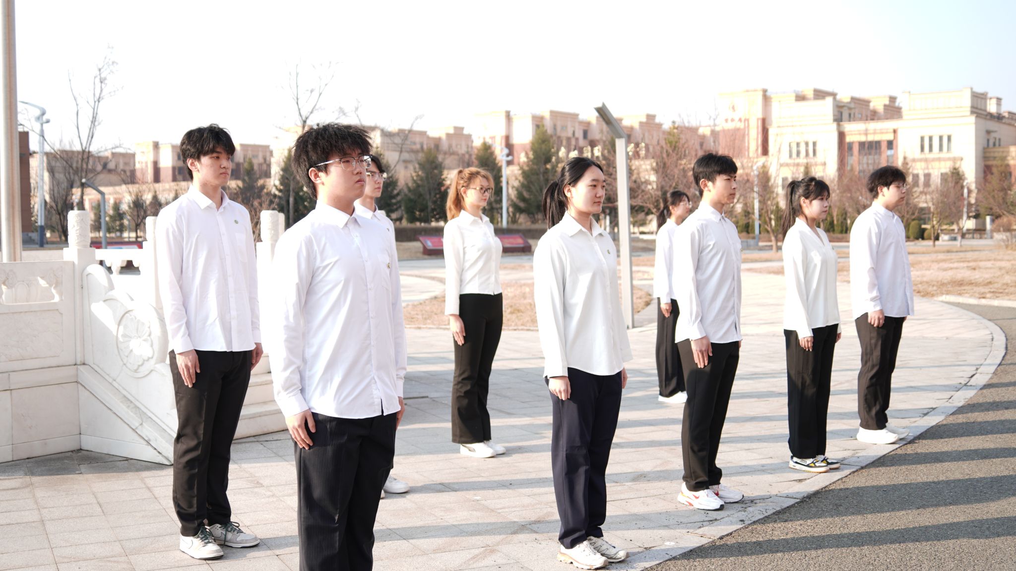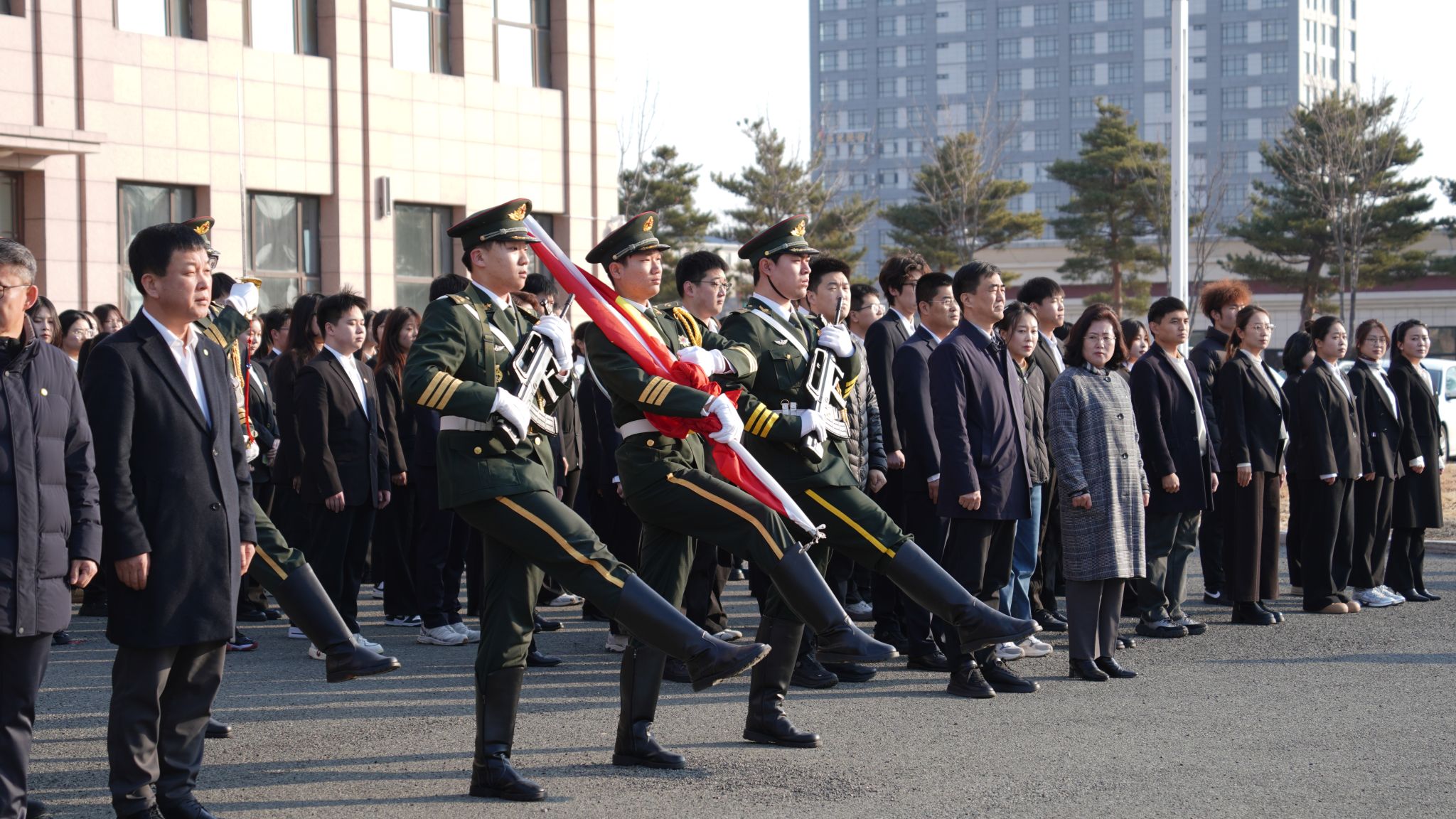 上午7时,主题升旗仪式在知新楼南门广场举行。珲春校区事务管理部、后勤保障部负责人,各学院领导、辅导员及学生代表整齐列队、精神饱满。