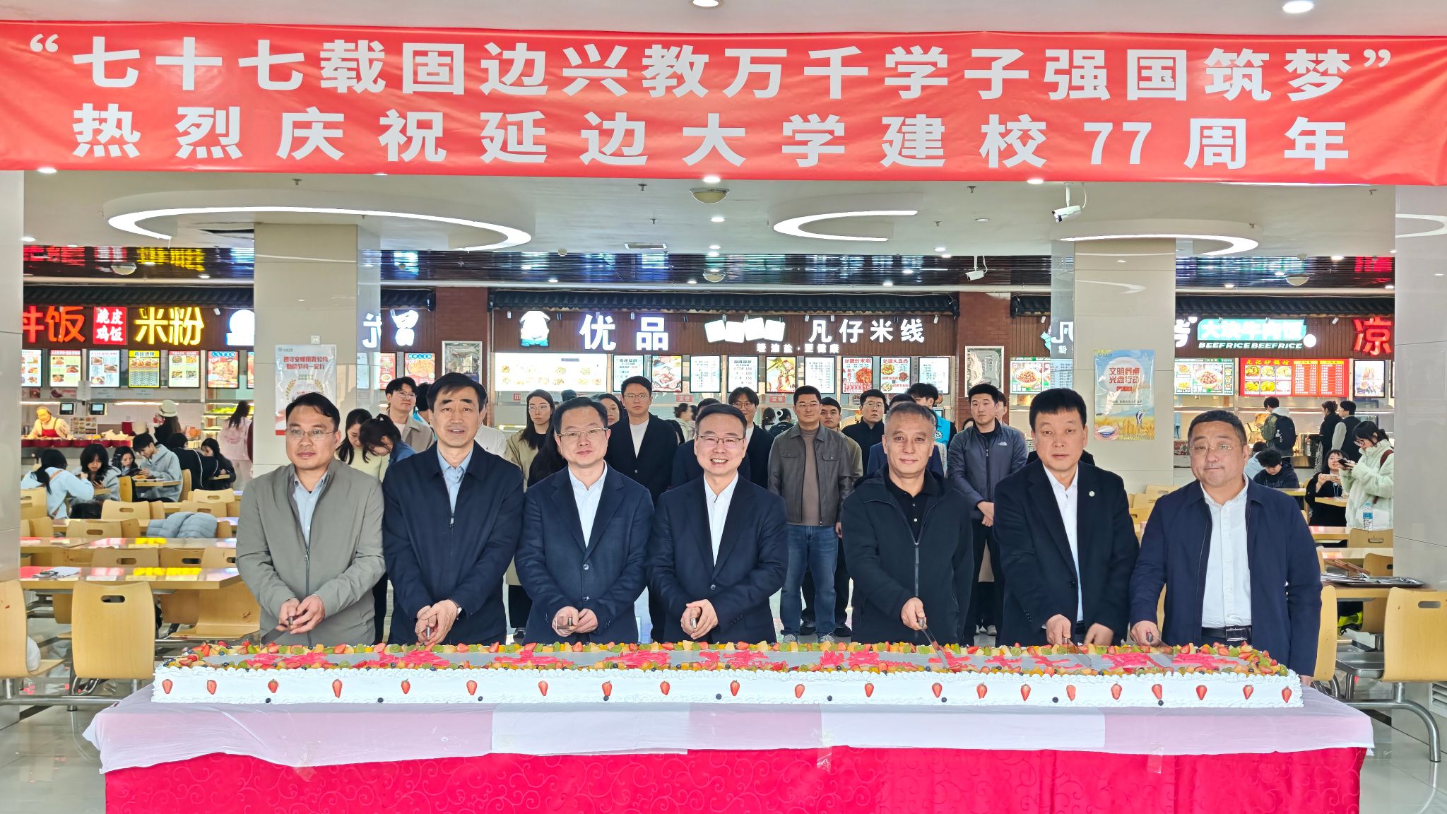 2026年4月1日,延边大学迎来建校77周年校庆日,珲春校区以“七十七载固边兴教 万千学子强国筑梦”为主题,举办主题升旗仪式与蛋糕献礼活动。校区师生齐聚一堂,共庆母校77载辉煌历程,共抒爱校荣校家国情怀。